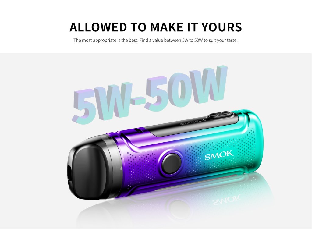 Smok rozšiřuje svoji nabídkou pravidelně o PODy s velkou vestavěnou baterií, displejem a dostatečně velkou nádržkou pro e-liquid. Poslední tento kousek SMOK Nord C má vestavěnou baterii s kapacitou 1800mAh dobíjenou rychlým rozhraním USB-C/1,5A. Maximální možný nastavitelný výkon má hodnotu 50W.