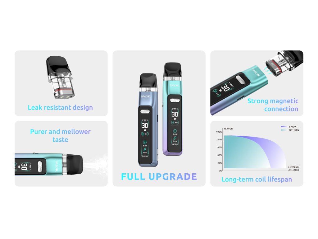 Cigareta v sobě nese i chytrou elektroniku, která po vložení PODu sama vyhodnotí a nastaví výkon. Ti zkušenější uživatelé pak mají i možnost si výkon v daném rozsahu po 1W upravit.